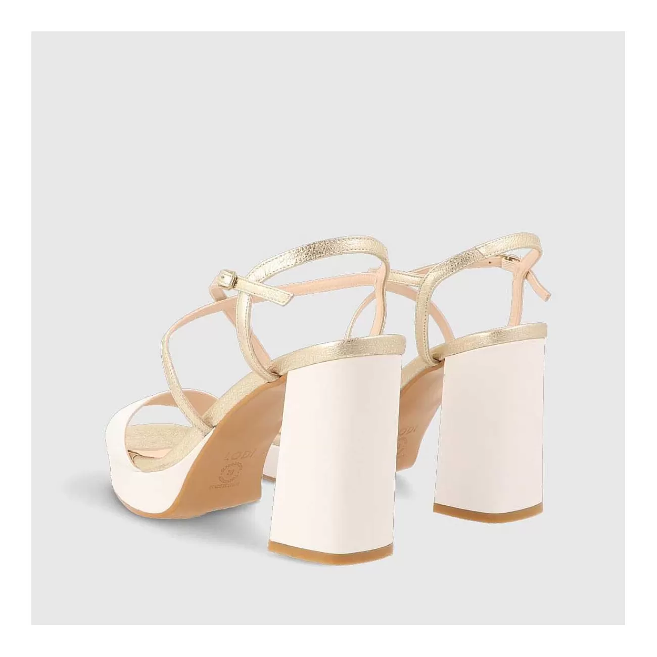 Sandalia De Lodi En Piel Lisa De Color Blanco Y Detalle De Tiras En Piel Con Destellos Oro