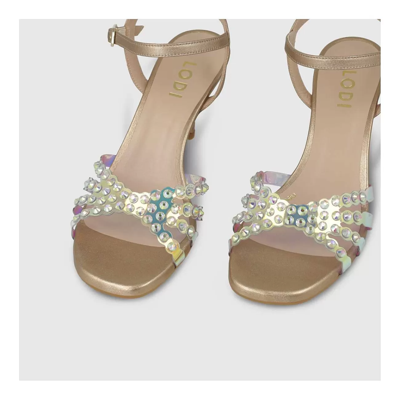 Sandalias De Tacón De Mujer Juslu De Lodi Combinado En Piel Y Vinilo De Color Oro Viejo. Destacar La Fusión De Transparencia Con Pedrería Que Aportan Un Toque Moderno Y Sensual. Cierre Mediante Hebilla Con Tiras Al Tobillo. Punta Semicuadrada. Un Diseño Confeccionado Con Un Tacón Fino De 7.5 Cm De Altura. Interior Forrado En Piel. Incluye Planta New Gel Para Mayor Comodidad En Todas Tus Pisadas. Fabricado En España.