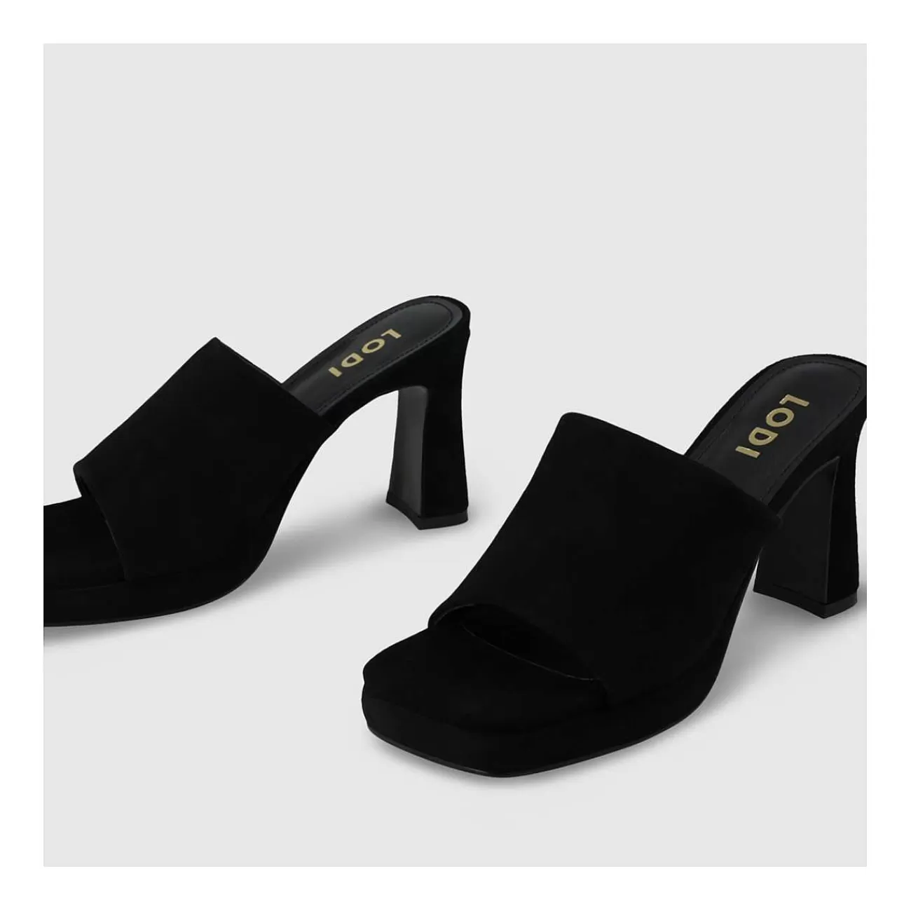 Sandalias De Mujer Genia De Lodi En Ante De Color Negro. Un Diseño Confeccionado Con Tacón De 10 Cm Y Plataforma De 2Cm De Altura, Combinación De Altura Y Comodidad Perfecta Para Un Look Diario.Punta Cuadrada. Interior Forrado En Piel. Incluye Planta New Gel Para Mayor Comodidad En Todas Tus Pisadas.