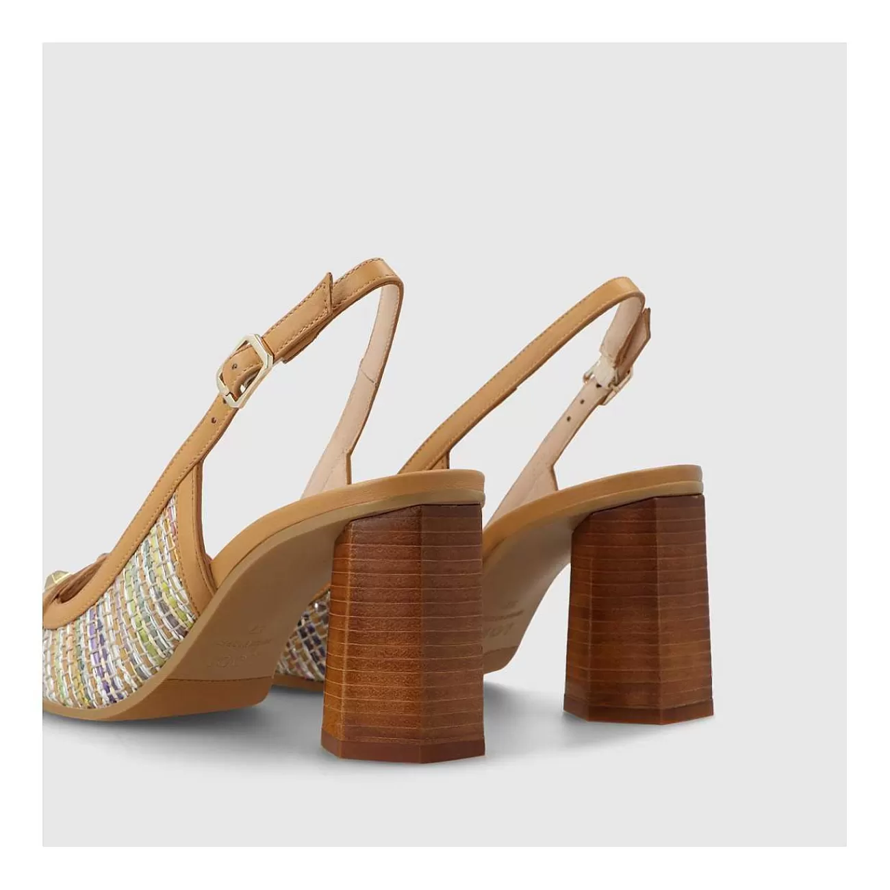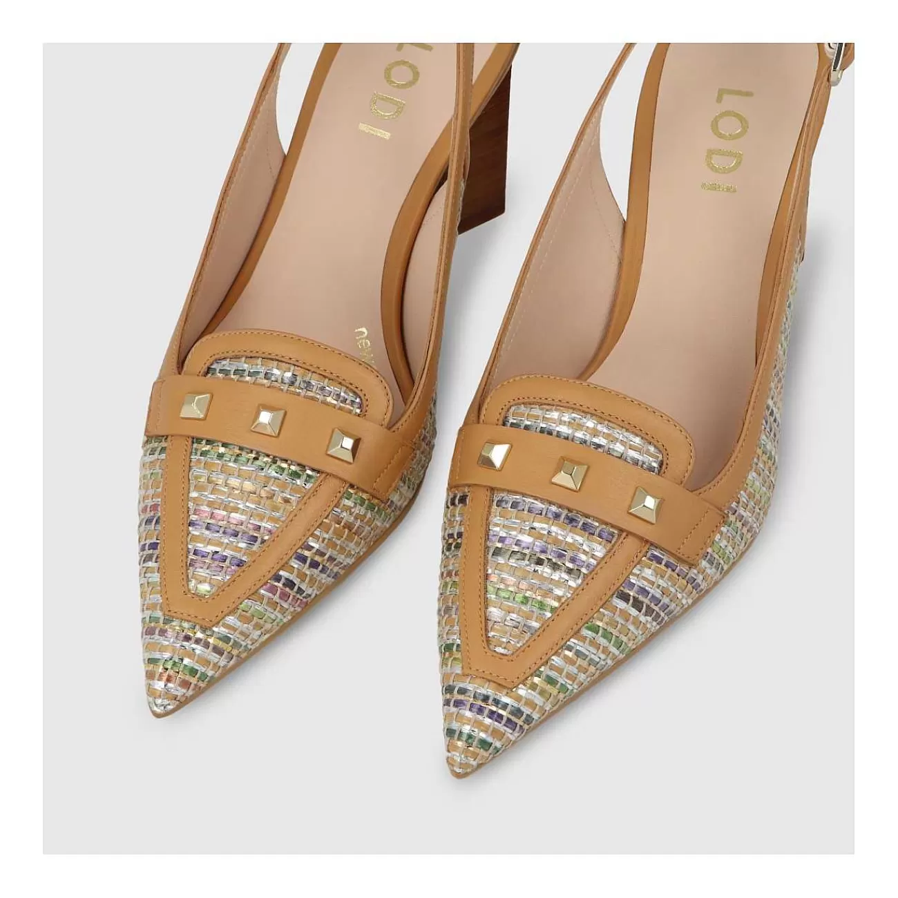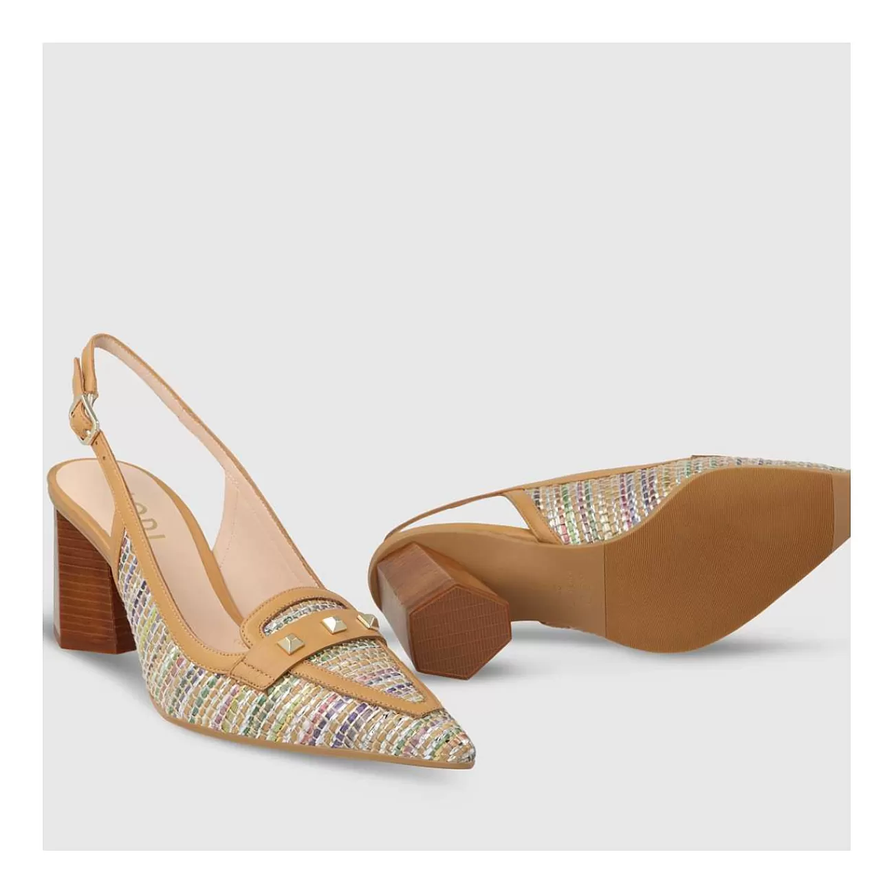 Zapatos De Salón Destalonados De Mujer Elatari De Lodi En Tejido Efectoefecto Rafia Multicolor. Combinado Con Detalles En Piel Y Remaches Aportando Un Toque Sofisticado Y Estilo. Un Diseño Confeccionado Con Un Tacón Geométrico De 8.5 Cm De Altura. Punta Fina Y Escote En Copete. Cierre Mediante Hebilla Lateral. Interior Forrado En Piel. Incluye Planta New Gel Para Mayor Comodidad En Todas Tus Pisadas. Fabricado En España.