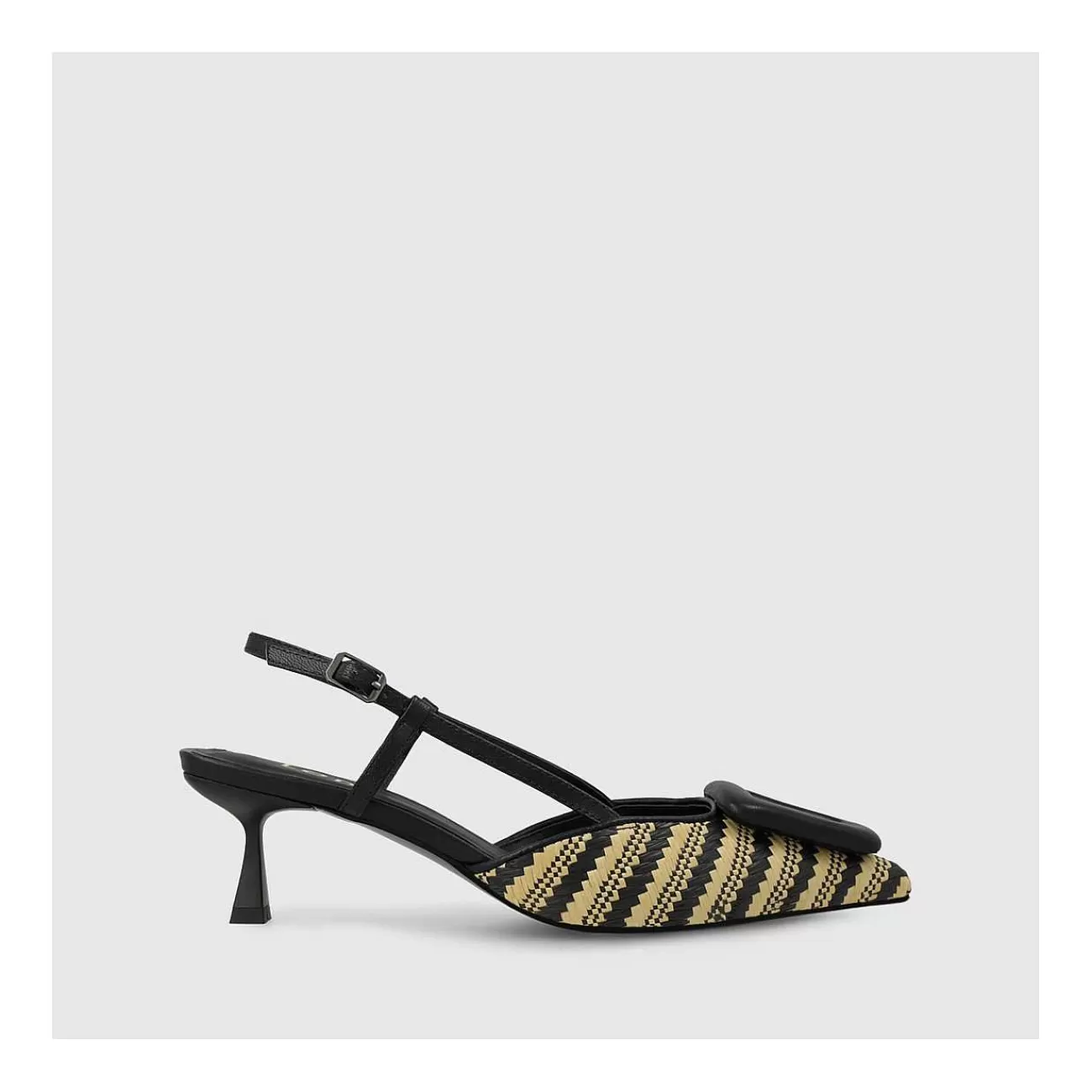 Zapatos De Salón Destalonados De Mujer En Tejido Efecto Rafia