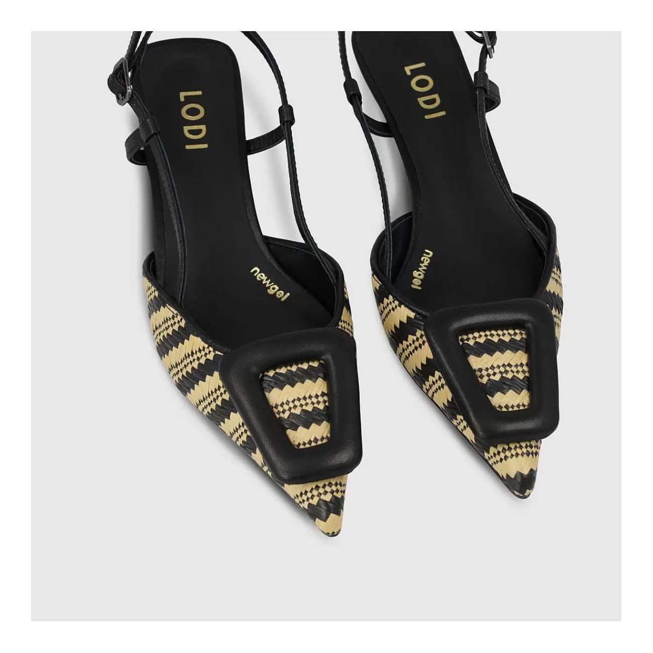 Zapato De Salón Destalonado De Mujer Beso De Lodi En Tejido Efecto Rafia De Color Negro. Combinado Con Piel Al Tono Y Detalle De Adorno En Piel. Un Diseño Con Toque Chic Para Cualquier Look. Confeccionado Con Tacón Geométrico De 5.5 Cm De Altura. Cierre Lateral Mediante Hebilla. Interior Forrado En Piel. Incluye Planta New Gel Para Mayor Comodidad En Todas Tus Pisadas.
