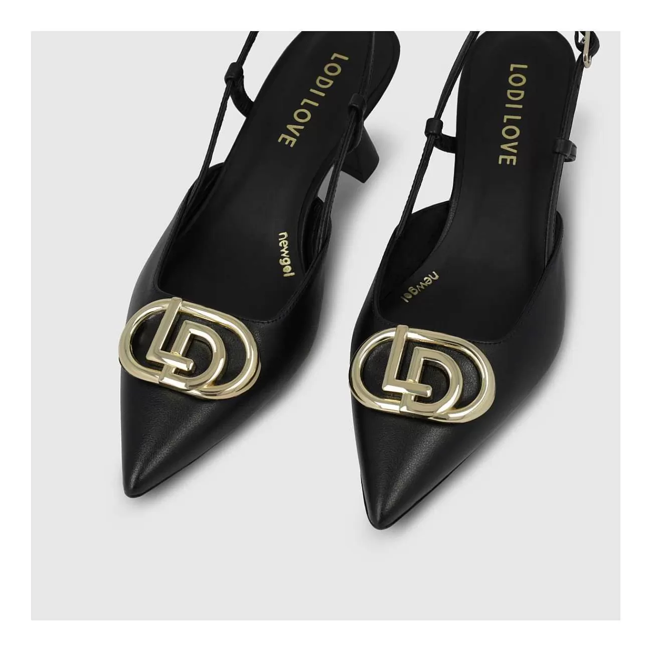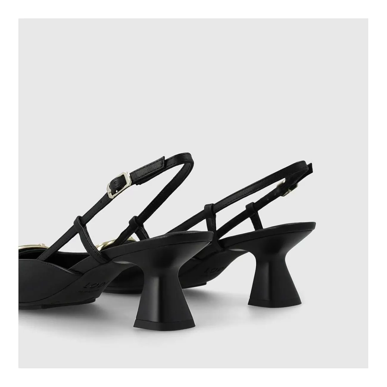 Zapatos De Salón Destalonados De Mujer Kal4427 De Piel De Color Negro. Detalle De Adorno Metálico Con Logo De La Marca.Un Diseño Confeccionado Con Tacón Geométrico De 6 Cm De Altura.Cierre Lateral Mediante Hebilla. Punta Fina.Interior Forrado En Piel. Incluye Planta New Gel Para Mayor Comodidad En Todas Tus Pisadas. Fabricado En España.